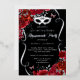 Invitation En Aluminium Flore Argent Rouge Défilé Masquerade Quinceanera