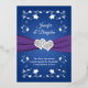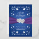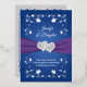 Ce faire-part de mariage romantique a de véritables arcs floraux en feuille d'argent au-dessus et au-dessous d'un ruban d'IMPRIMÉ sur le violet et simulé parties scintillant d'argent et broche cardiaque reliée au cristal au centre d'un arrière - plan bleu royal. Les noms du couple heureux apparaissent en blanc au-dessus du ruban, avec le verset personnalisable au-dessous du ruban qui dit : "Deux vies, deux coeurs, unis ensemble par l'amitié, unis pour toujours dans l'amour". Le côté arrière de l'invitation est gris avec un rouleau décoratif bleu royal et un cadre fleuri autour du libellé en bleu et violet avec la même paire de coeurs doubles en haut à l'arrière entre les arcs fleuris. Des détails RSVP sont également disponibles à l'arrière de l'invitation, ce qui en fait une faire-part de mariage abordable et luxueuse qui saura enchanter vos invités mariages.