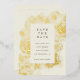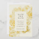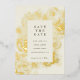 Un beau et classique enregistrer la date avec des crèmes et des éléments en feuille d'or. Parfait pour un mariage formel et élégant avec une touche vintage.