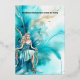 Invitation En Aluminium Foil aquarelle princesse turquoise or fleuri