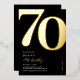 Célébrez le début d'une nouvelle décennie avec style grâce à nos invitations de fête d'anniversaire des 70 ans de qualité supérieure. Conçues avec un chiffre '70' gras dans une police serif accrocheuse et une finition en véritable foil dans des teintes noires et dorées riches. Cette invitation moderne respire la sophistication et l'élégance, idéale pour quelqu'un qui apprécie le souci du détail. Rendez-la vôtre avec notre modèle facile à personnaliser pour élever votre célébration de cet événement marquant !