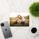 Modern graduation photo announcement features your landscape oriented photo on the front, with "Graduate" in gold foil handwritten style script and your name, school and graduation year beneath.