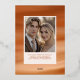 Invitation avant. Ce faire-part de mariage en terre cuite présente un mélange riche de rouille et d'argile, complété par des éléments de papier peint brillants à l'avant qui ajoutent une touche luxueuse. Le design abstrait évoque des canyons ensoleillés, le charme du désert et des soirées d'automne confortables, idéales pour des célébrations boho-chic ou des mariages rustiques modernes.