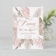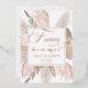 Beau texte de script, "Forever a une belle bague à elle" boho tons neutres pampas floral séché et graminées lapin avec faire-part photo de palmiers avec texte rose feuille or et accents.