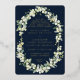 Des neiges peintes à la main et des tiges d'eucalyptus disposées dans un beau cadre botanique contre un arrière - plan de la marine sombre. Le texte et les points dispersés sur le devant de la carte sont pressés à l'envers. Tout le texte est entièrement modifiable. Veuillez consulter cette collection dans mon magasin pour les invitations avec des options de libellé alternatives, des couleurs différentes et pour la coordination des articles.
