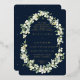 Une invitation de mariage hivernale avec des neiges peintes à la main et des tiges d'eucalyptus disposées dans un cadre botanique magnifique contre un arrière - plan de la marine sombre. Le texte et les points dispersés sur le devant de la carte sont pressés à l'envers. Tout le texte est entièrement modifiable. Veuillez consulter cette collection dans mon magasin pour les invitations avec des options de libellé alternatives, des couleurs différentes et pour la coordination des articles.