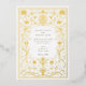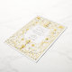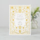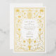 Annoncez votre journée spéciale avec une élégance inégalée en utilisant ce faire-part de mariage exquis, avec une conception époustouflante de feuille d'or. Inspirée par l'époque élégante de l'Art Nouveau, la frontière complexe présente des défilés dorés fluides, des fleurs dorées stylisées délicates et à cinq pétales, et d'élégants vrais fils feuillés, tous confectionnés en feuille d'or luxueuse qui crée un effet de relief étonnant contre l'arrière - plan texturé blanc ou blanc cassé. Le cadre floral orné arche gracieusement autour du panneau central, où vos détails mariages sont présentés dans la typographie classique. Ce design intemporel est parfait pour les couples à la recherche d'une invitation romantique, luxueuse et artistiquement détaillée.