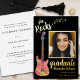 Célébrez votre fille diplômée avec une carte de faire-part de remise de diplômes en papier noir et or à l'électrice rose branchée et vibrante, avec des oeuvres d'art de guitare funky psychédélique colorées. Le design présente une guitare rose électrique audacieuse avec des motifs psychédéliques tourbillonnants, capturant une ambiance amusante et énergique. Accentué de feuille d'or et de calligraphie noire et de notes musicales, il reflète parfaitement l'excitation de l'occasion. Le recto met en évidence le nom de votre fille et les détails de la remise de diplômes dans la typographie blanche contemporaine, tandis que le verso offre de l’espace pour des informations supplémentaires. Un modèle photo facile à utiliser vous permet d'ajouter une image chère, en faisant un souvenir personnel. Conçue par l'artiste Catherine Sweetman, cette carte allie le flair artistique et l'élégance moderne, ce qui en fait la meilleure façon de célébrer son jalon dans le style.