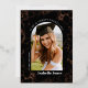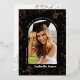 Cette élégante invitation à la remise des diplômes comporte une photo en arc sur un arrière - plan noir avec motifs floraux de gardenia sur feuille d'or rose. Personnalisez-le selon vos besoins. Vous pouvez trouver des produits correspondants dans mon magasin.