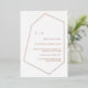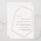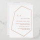 Minimal, moderne et sophistiqué. Cette invitation géométrique moderne présente une véritable feuille d'or rose. Customisez facilement ce design avec vos propres noms et détails.