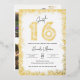 Glam Anniversaire Photo Sweet 16 Real Gold Foil Invitation : 16h invitation avec une véritable bordure en feuille d'or et l'âge sur l'invitation avant, et texte d'invitation gris foncé, sur un arrière - plan blanc. Le dos comprend deux de vos propres photos, une bordure blanche et un script qui dit "sweet sixteen". C'est l'invitation parfaite Sweet 16 anniversaire.
