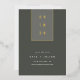 A simple and elegant save the date design for modern couples, featuring a gold foil geometric element bearing your wedding date against a tone on tone dark smoked olive green background. Personalize with your names, wedding location, and website or additional details at the bottom.