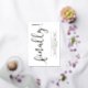 Une invitation minimaliste à une partie d'engagement typographique. Ce design comporte le mot "enfin !" en gras feuille d'or, en caractères de police et détails de la fête en caractères sans serif modernes, le tout sur un arrière - plan blanc.