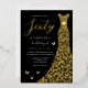 Invitation En Aluminium Gold Foil Heart Gown Noir 60e fête d'anniversaire