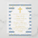 Gold Foil Photo Dusty Blue Stripes Première communion Foil Invitation