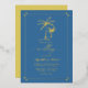 Invitation vos invités dans le style avec cet élégant faire-part de mariage en feuille d'or. Avec son design minimaliste de palmiers, son arrière - plan bleu tamisé et son inversion dorée, cette invitation respire le raffinement et le charme côtier. Idéal pour des mariages de plage luxueux ou des fêtes à thème tropical. Entièrement personnalisable pour convenir à votre journée spéciale.