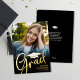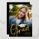 Célébrez votre diplômé en style grâce à cette invitation photo avec un design noir et or. Personnalisez avec le modèle de nom du diplômé, le style de photographie senior et la classe de détails. Le design de typographie branché et l'élégant script de calligraphie créent un look moderne mais intemporel. Parfait pour les diplômés du secondaire ou du collège, cet invitation minimaliste simple est une façon chic d'annoncer votre grand parti en style.