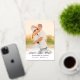 Cet élégant enregistrement de la date présente un script chatoyant en feuille d'or avec un dossier rayé et beaucoup de place pour des informations mariages supplémentaires, comme votre site Web mariage ou les détails de l'hébergement. Téléchargez votre propre photo et customisez les informations pour inclure les détails de votre mariage.