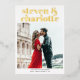 Modern casual bold script names save the date wedding photo announcement. A cool, simple and minimalist save the date with real gold foil.