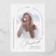 Real gold foil simple graduation invitation features modern script and arch frame, with photo on the back, elegant and minimalist. Custom it with your own photo and grad party information.
