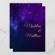 Des taches astrales d'or, donnant l'impression d'étoiles dans le ciel, brillent au-dessus des mots sur un arrière - plan violet. Un thème moderne pour une soirée élégante invitation de mariage personnalisée. Invitation en ligne téléchargeable Modifiez facilement les informations de votre propre conception personnalisée.