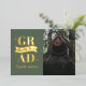 Gold and white graduation with class year inside a banner ribbon and decorative star accent. Photo template via Pixabay licensed under CC0 and must be replaced with your own photo