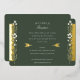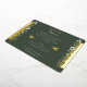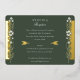 Cette invitation à la réception de mariage est un véritable chef-d'oeuvre d'élégance et de style, alliant la beauté naturelle de l'Art Nouveau à une touche moderne. L'invitation comprend un luxueux arrière - plan vert de forêt profonde, complété par une bande d'accent de feuille d'or sur le côté, apportant une touche d'opulence au design. Des illustrations florales stylisées en crème et en sauge ornent les frontières, incarnant les lignes organiques et fluides caractéristiques de l'Art Nouveau. Les détails de la réception sont délicatement inscrits dans un script sophistiqué, invitant les clients à poursuivre la célébration avec le dîner, la danse et le plaisir.