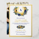 Tournesol et cheval à thème feuille d'or faire-part de mariage en blanc, jaune et bleu. Faire-part de mariage monogramme en fer à cheval avec détails de feuille d'or, tournesols, fleurs en bleu avec verdure et brindilles de baies. Personnalisez avec une photo à l'arrière. Un fer à cheval avec des bordures de feuille d'or, des tournesols et une photo à l'arrière. Faire-part de mariage de tournesol avec monogramme en fer à cheval.