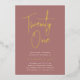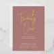 Célébrez son anniversaire d'étape avec ces invitations chic à la fête de 21e anniversaire avec "vingt et un" en écriture manuscrite en feuille d'or moderne. Personnalisez avec les détails de votre fête en dessous. Un choix inoubliable et luxueux pour fabuleuses fêtes du 21e anniversaire.