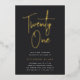 Célébrez son anniversaire d'étape avec ces invitations chic à la fête de 21e anniversaire avec "vingt et un" en écriture manuscrite en feuille d'or moderne. Personnalisez avec les détails de votre fête en dessous. Un choix inoubliable et luxueux pour fabuleuses fêtes du 21e anniversaire.