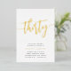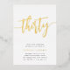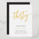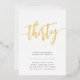 Célébrez son anniversaire d'étape avec ces invitations chic à la fête de 30e anniversaire avec "trente" en écriture manuscrite en feuille d'or moderne. Personnalisez avec les détails de votre fête en dessous. Un choix inoubliable et luxueux pour fabuleuses fêtes du 30e anniversaire.