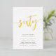 Célébrez son anniversaire d'étape avec ces invitations chic à la fête du 60e anniversaire avec "soixante" en écriture manuscrite en feuille d'or moderne. Personnalisez avec les détails de votre fête en dessous. Un choix inoubliable et luxueux pour de fabuleuses célébrations du 60e anniversaire.