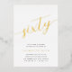 Célébrez son anniversaire d'étape avec ces invitations chic à la fête du 60e anniversaire avec "soixante" en écriture manuscrite en feuille d'or moderne. Personnalisez avec les détails de votre fête en dessous. Un choix inoubliable et luxueux pour de fabuleuses célébrations du 60e anniversaire.