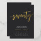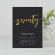 Célébrez son anniversaire d'étape avec ces invitations chic à la fête de 70e anniversaire avec "soixante-dix" en écriture manuscrite en feuille d'or moderne. Personnalisez avec les détails de votre fête en dessous. Un choix inoubliable et luxueux pour de fabuleuses célébrations du 70e anniversaire.