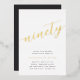 Célébrez son anniversaire d'étape avec ces invitations chic à la fête du 90e anniversaire avec "quatre-vingt-dix" en écriture manuscrite en feuille d'or moderne. Personnalisez avec les détails de votre fête en dessous. Un choix inoubliable et luxueux pour de fabuleuses célébrations du 90e anniversaire.