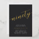 Célébrez son anniversaire d'étape avec ces invitations chic à la fête du 90e anniversaire avec "quatre-vingt-dix" en écriture manuscrite en feuille d'or moderne. Personnalisez avec les détails de votre fête en dessous. Un choix inoubliable et luxueux pour de fabuleuses célébrations du 90e anniversaire.