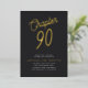 Célébrez le 90e anniversaire d'une personne spéciale avec cette invitation luxueuse. Doté d'un bel arrière - plan noir et d'un superbe script de feuille d'or, cette élégante invitation sera la meilleure façon de commémorer une étape si importante. Avec son design intemporel, il est sûr d'ajouter une couche supplémentaire de classe et de sophistication à votre événement. Faites de la 90ème célébration une fête à retenir avec l'aide de cette belle invitation.