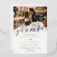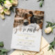 Un faire-part de mariage photo informel avec vous est invité écrit dans une belle calligraphie à travers un éclat transparent d'aquarelle décorant votre photo. Ajoutez une autre photo à l'arrière de l'invitation de mariage avec un code qr que vous pouvez remplacer par votre propre, les invités peuvent scanner pour accéder à votre site mariage. Beau faire-part de mariage photo avec vos noms en feuille or. Code QR tout en un faire-part de mariage avec vos photos et détails de feuille d'or.