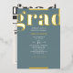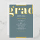 Celebrate in the new graduate with this modern and stylish graduation invitation. The design feobjets the word GRAD at the top on bold typographiy and all information party underneath over a green background with de la real gold foil invite, the design is finished on the reverse with a template space for your favorite grad picture, grad year and name. Personalize the template with the fields provided or click customize further for more options