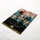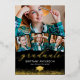 Invitations modernes de remise de diplômes avec un arrière - plan noir élégant, 4 photos du diplômé, un tableau de mortier, et un simple modèle de célébration de grade utilisant de la feuille d'or réelle qui peut être changée en or argenté ou rose.