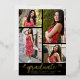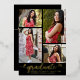Soyez fier, réjouissez-vous et présentez cette étape de votre carrière préférée ! Envoyez ce faire-part de collage de photos à 4 personnages pour un événement à retenir. Un visuel amusant et ludique de l'écriture manuscrite en feuille d'or et des coeurs mignons et ludiques, avec son nom, son année de classe, son école et 4 photos de votre choix superposent un arrière - plan noir. Personnalisez le texte personnalisé avec le nom, l’école et l’année de classe de votre élève sur le devant. Au verso, ajoutez votre note personnelle, la prochaine école où elle fréquente, les détails de la fête, etc. sur l’arrière - plan noir. Des cartes de remerciement, des dessus casquettes, des serviettes, des assiettes et d'autres goodies de graduation sont également disponibles dans cette collection branchée et élégante. Garanti d'ajouter du plaisir élégant à leur occasion spéciale! Il vous suffit de taper le nom de votre diplômée, l’année scolaire et l’année de classe, d’ajouter leurs 4 photos, de customiser le message au dos et de personnaliser facilement ce faire-part d’obtention de diplôme. S'il vous plaît, envoyez-moi un message avec toute question ou demande.