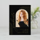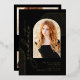 Black et Foil Gold élégant script photo graduation faire-part. Tout le texte ainsi que les arches alignées sont imprimés en or en feuille réelle sur le devant. Personnalisez avec le nom, l'année d'études, l'école et la photo. L'arrière dispose d'un espace supplémentaire pour plus de photos ainsi que pour la cérémonie de remise des diplômes ou des informations sur la fête. Crédit photo : Kseniia Perminov © Kimbellished, LLC