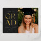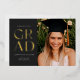 Célébrez votre diplôme en style avec cette faire-part moderne de graduation et l'invitation. Il comporte le mot GRAD dans une élégante sans serif pressée avec du papier peint sur le devant sur un arrière - plan sombre, ainsi que l'espace pour une photo. L'arrière de l'invitation a de l'espace pour une deuxième photo ainsi que de la place pour tous les détails de votre fête de remise des diplômes.