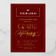 Grande invitation à l'ouverture dans un élégant design de marsala et de feuille d'or pour votre entreprise, peut-être un magasin, un restaurant, ou un salon de beauté. Ajoutez aussi votre propre logo ! Grande invitation d'ouverture rouge foncé dans un design élégant de typographie en feuille d'or. Grande invitation d'ouverture personnalisée avec votre logo.