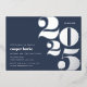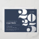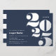 L'invitation de la fête de graduation moderne comprend "2023" en papier argenté surdimensionné sur un arrière - plan bleu marine, avec les détails de votre parti aligné à gauche en blanc.