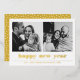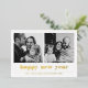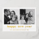 Une typographie graphique audacieuse contemporaine et minimale heureuse carte photo de vacances de la nouvelle année en papier d'aluminium Le dos de la carte présente une pop de couleur de coordination avec un motif vedette d'hiver. Carte de luxe minimale pour les voeux de Noël ou de vacances tendance!