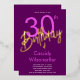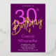 Une invitation à la fête du 30e anniversaire avec un design typographique audacieux. L'invitation est décoré dans des tons violets, dorés et blancs. Prêt à invitation vos invités à la fête? Ajoutez simplement de l'information, ajoutez cette invitation à votre panier, puis profitez de cet anniversaire d'étape! Bold Purple 30e anniversaire Gold Foil Invitation Jours fériés Design | Melissa Patton - Designer