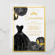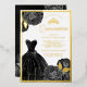 Invitation En Aluminium Gris noir brillant Roses Quinceanera Or