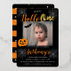 Ces véritables invitations à photographier pressées en papier d'aluminium sont parfaites pour tous ceux qui fêtent leur premier anniversaire cet Halloween. Le design comprend le libellé "Happy Hallo-one" dans une combinaison de feuille d'or, orange, noir et blanc avec des toiles d'araignées, une lanterne citrouille jack-o' et une chauve-souris volant éffrayante avec un espace pour une photo de votre choix et facile à personnaliser le libellé modèle... Super tendance et très effrayant !