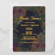 Une vraie faire-part de mariage de douche mariage en feuille d'or prend vie avec votre propre photo de couple changeable à l'arrière ou le même design de l'avant avec un arrière - plan bleu marine. Des éléments d'été colorés liés à la plage et à la côte d'hawaii tels que palmiers, fleurs, hibiscus complètent ce design. Préparez-vous à une célébration personnalisée et enchanteresse de l'amour. Customisez-le avec votre photo personnelle (si vous voulez), les noms, l'occasion, la date et l'heure. L'arrière - plan de ce design est le même sur le devant et vous pouvez le modifier avec votre propre photo personnalisable. Faites de votre rêve une réalité avec cette bonne carte de douche mariage à vibe. Hobinishop